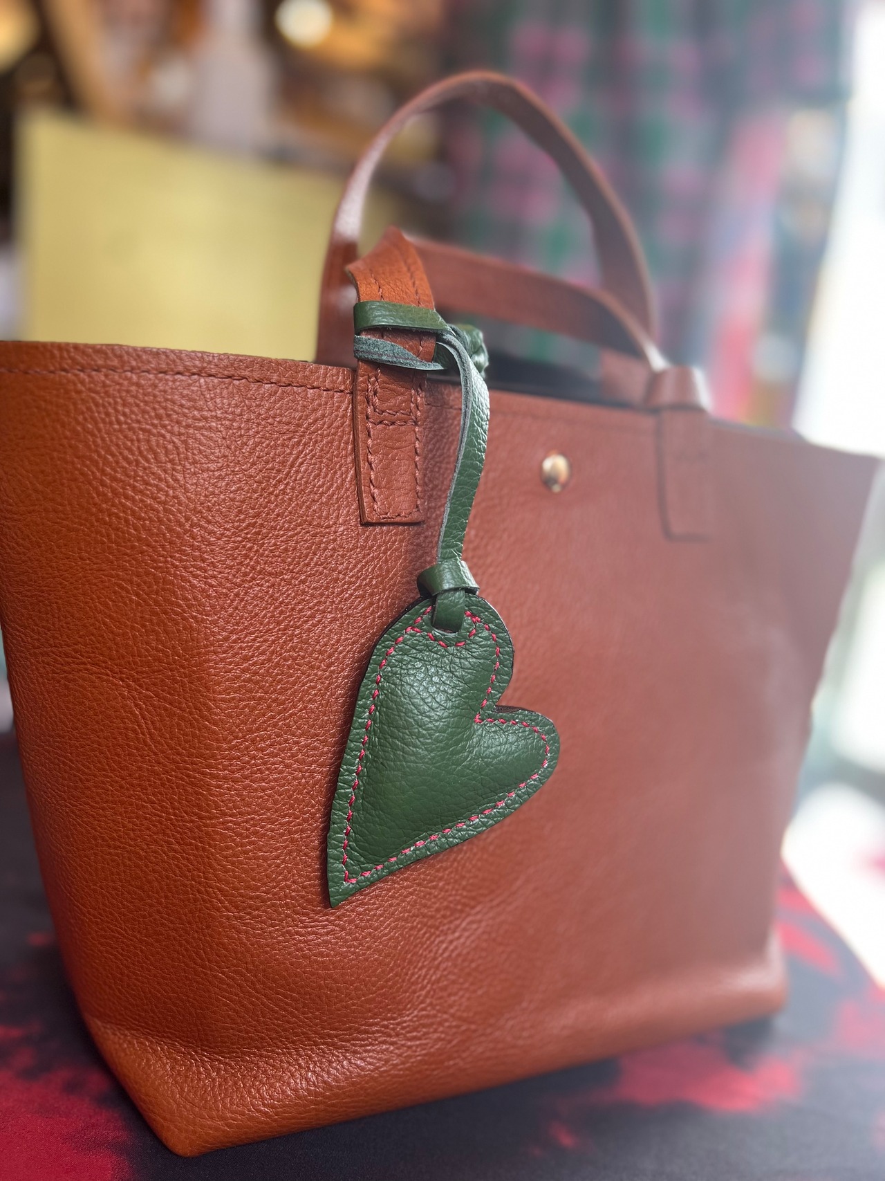 本革チャーム ふわふわしたハート型 大きさ約縦5センチ✖️横9センチ バッグチャームにもキーホルダーにもお使いいただけます♪ 1枚目ピンク 2枚目レッド 3枚目グリーン
